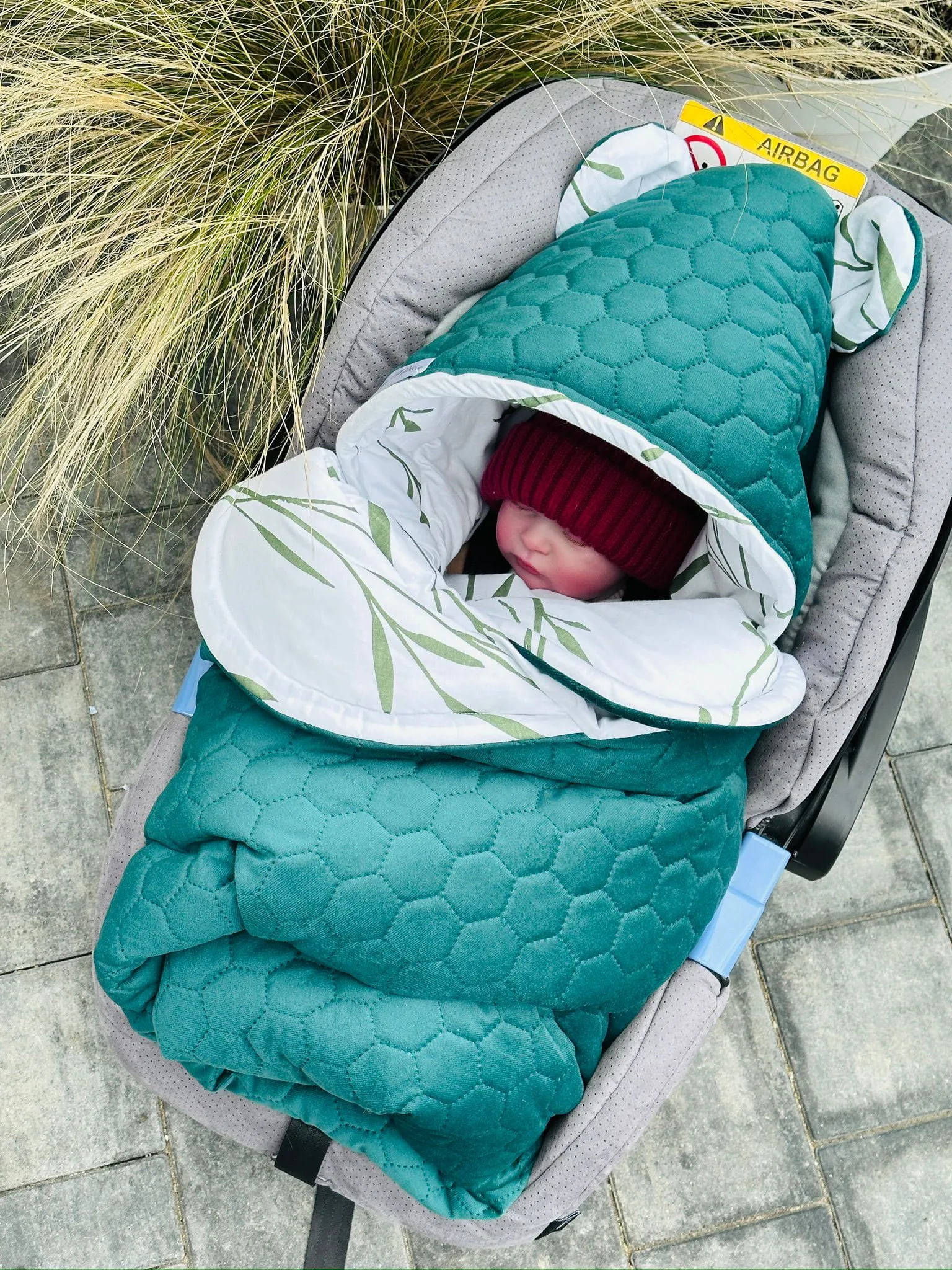 A na deser – osłona przed zimnym wiatrem, bo wiemy, że nawet najmniejszy powiew potrafi zepsuć spacer. Zapinany na rzep, żeby zakładanie było szybkie, łatwe i bez walki z dziecięcą energią.